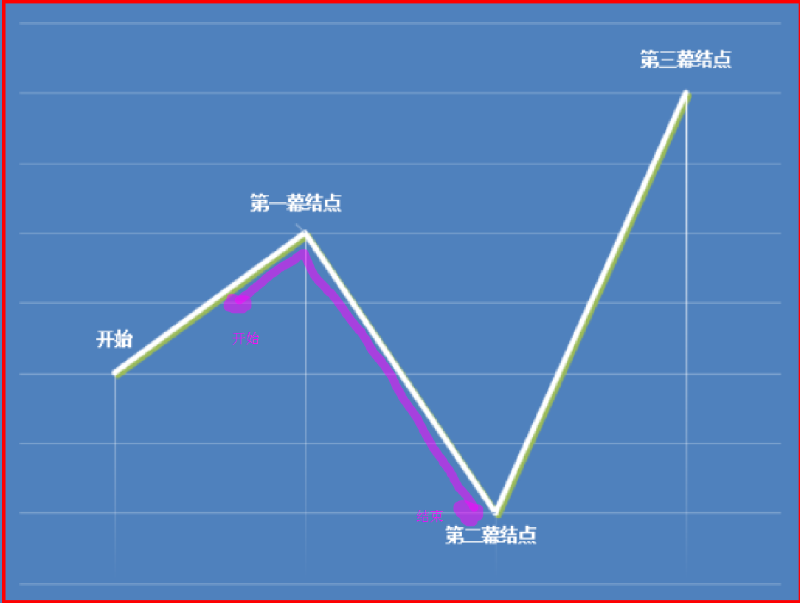 下图给大家演示一下次情节出现和结束的时间点(紫色线表示次情节)。