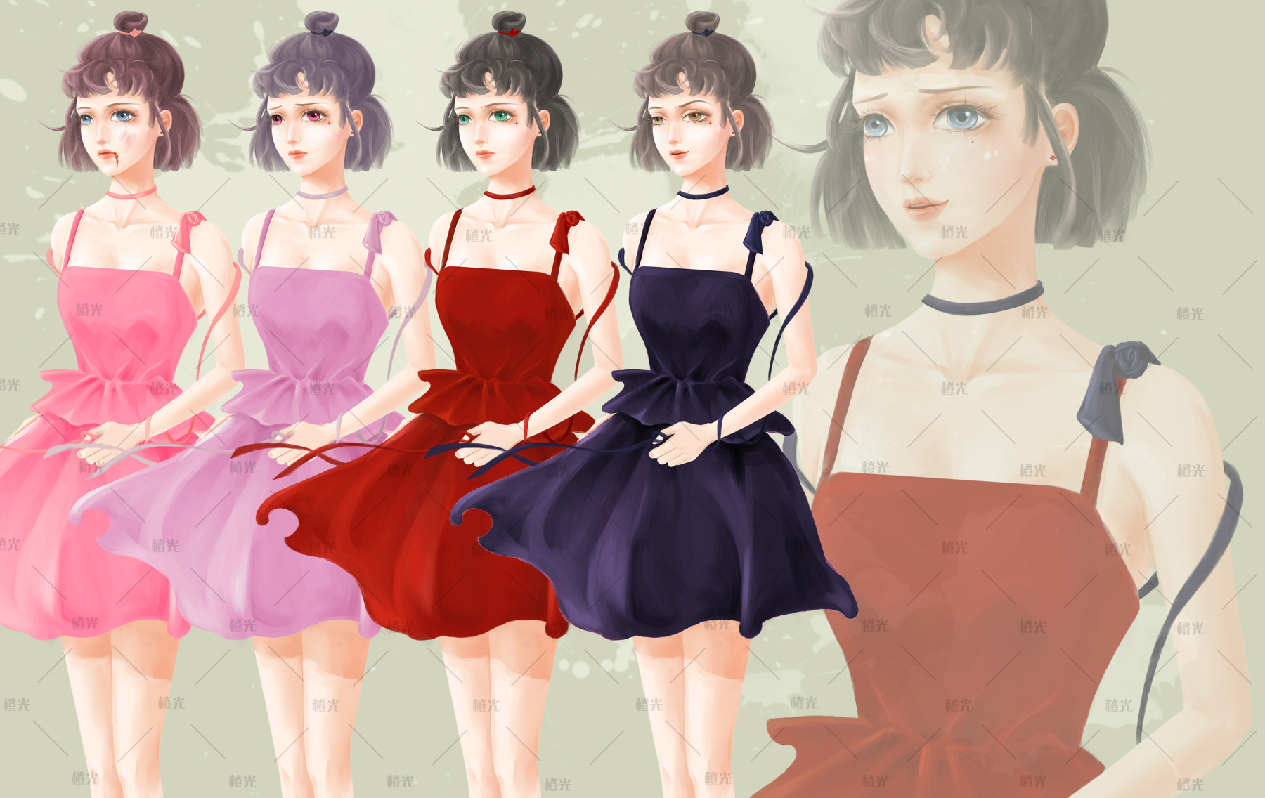 4色礼服短发女