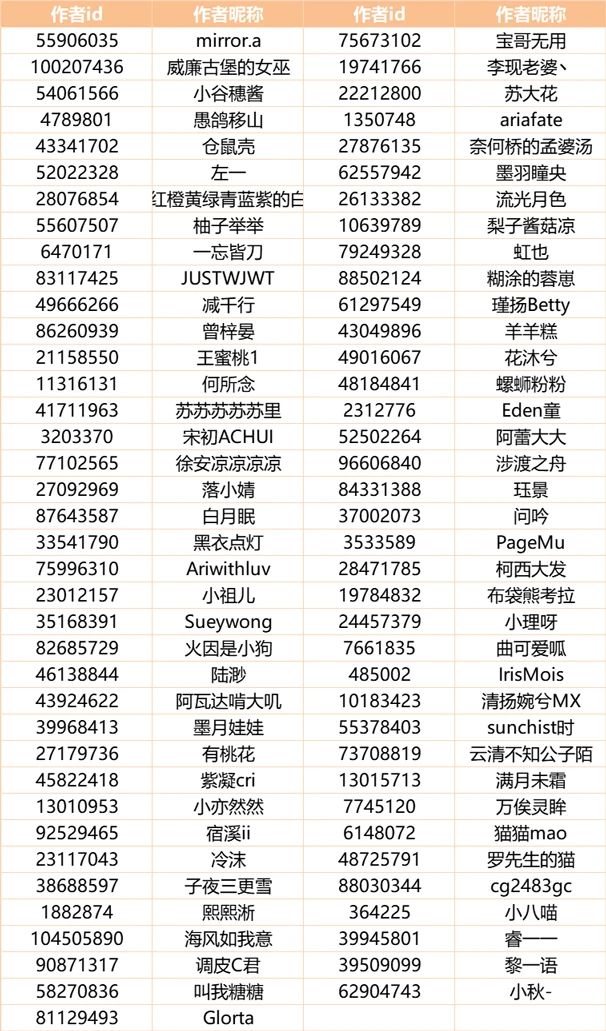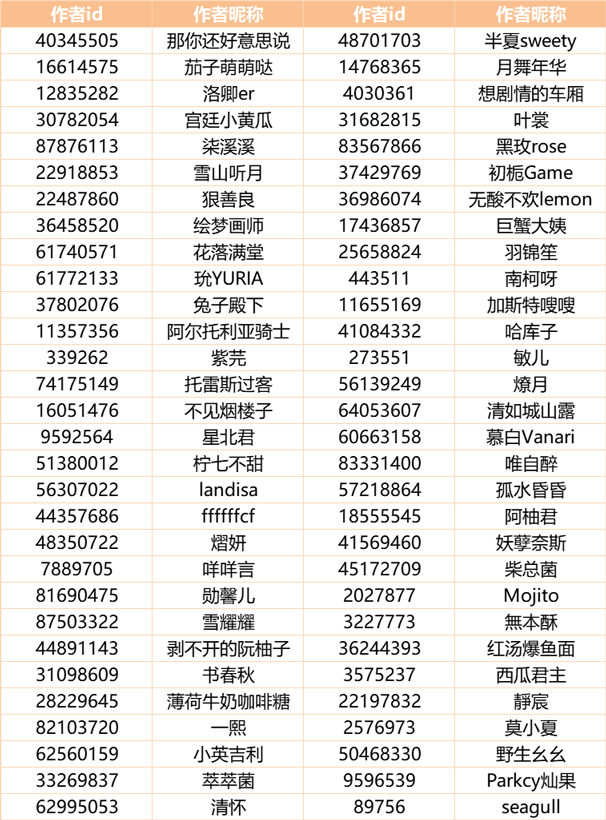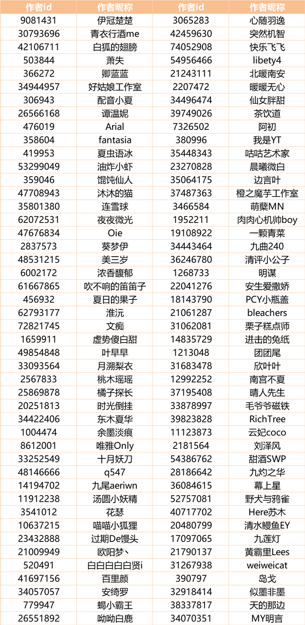 除以上作者外,还有部分正在参加 THE BEST 活动且符合王牌作者评审要求的作者,将会在THE BEST 活动结束后补发初级王牌作者徽章,期待他们在THE BEST活动中的优秀表现。