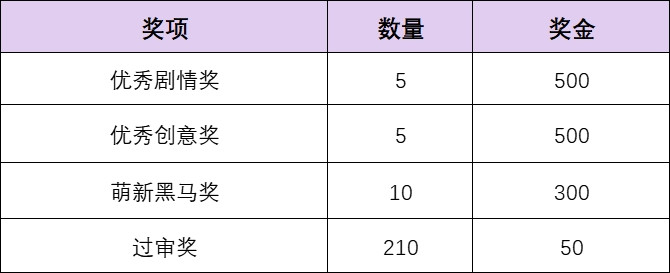 PS:过审奖是按照作者发放的,一个橙光作者ID对应一个作品。也就是说一个作者ID发布多个作品也只发放一次奖励。(选取前30规则:选取当天短篇征稿过审作品中,发布时间排名前30作品)