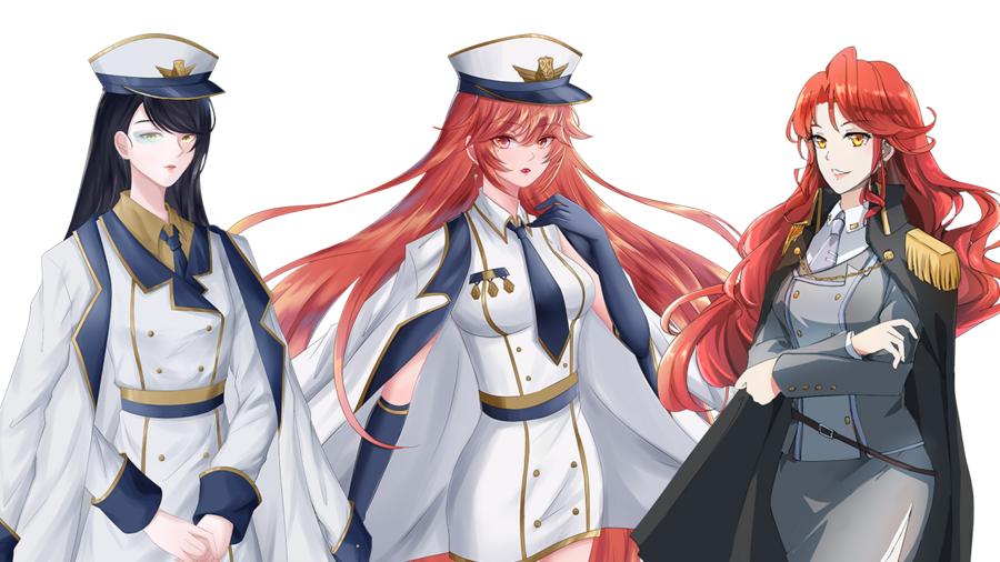 《黑发职业女》《红发军装女》《红发军装女》
