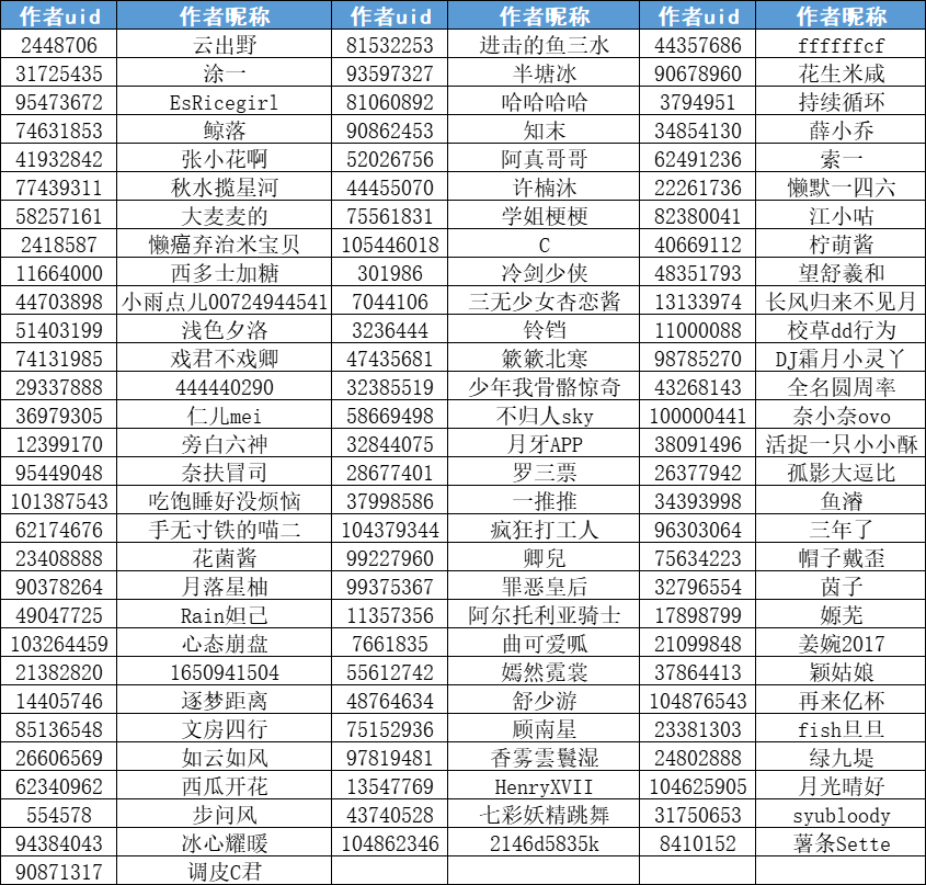 注:萌新奖获奖作者为截止到1.3日24:00未签约作者。