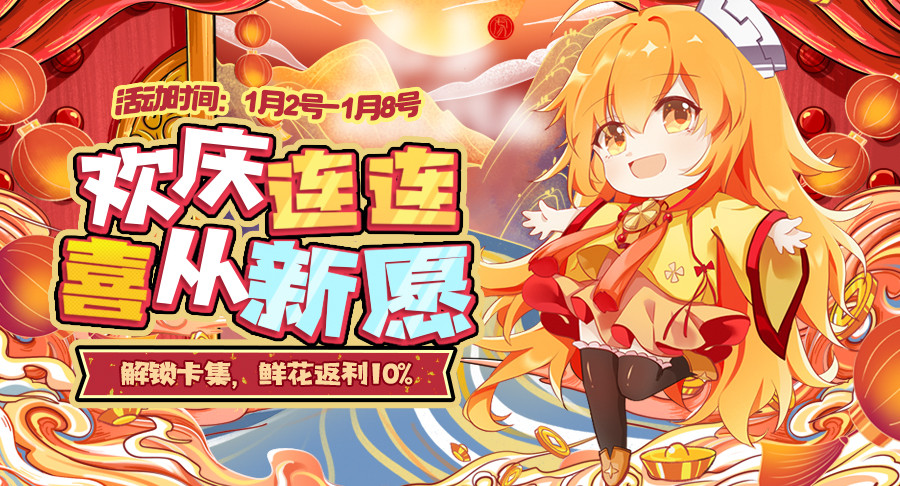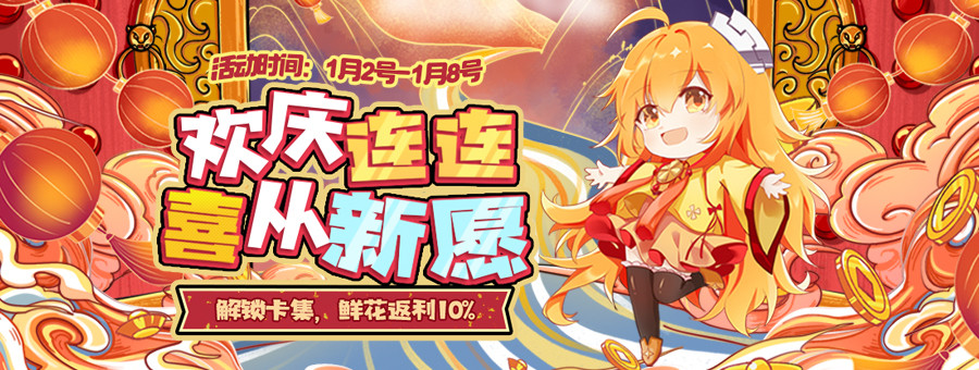 1、活动期间使用鲜花解锁全站有“卡集返赠”图标的卡集,都将获得10%的返利!符合条件的订单用户所返鲜花券(有效期30天)立即到账!