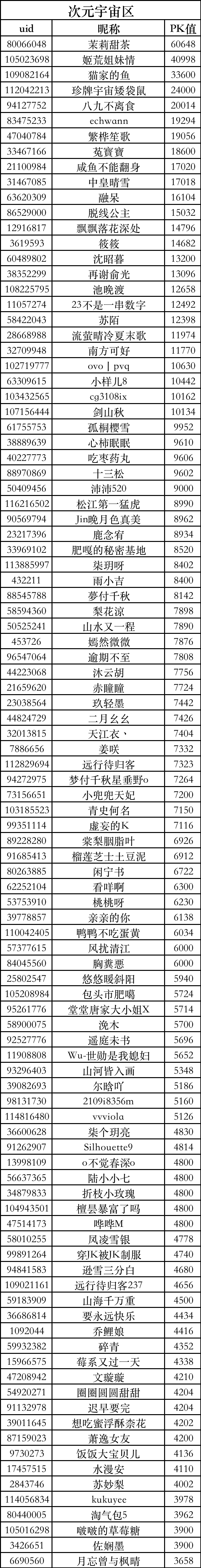 | 用户昵称 | 推荐作品 |