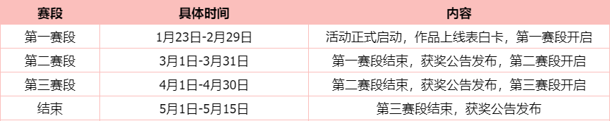 活动共计分为三个赛段,具体时间规划如下:
