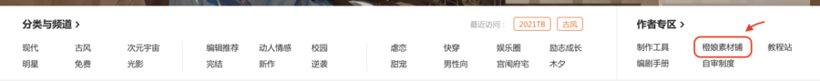 位于官网首页作者专区,提供海量付费素材供作者们挑选。