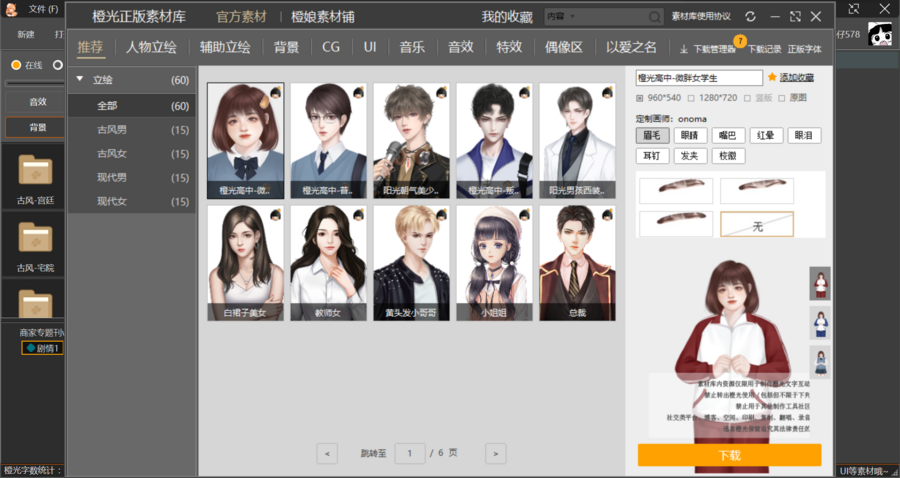 上架素材每日更新,官方拼团价优物美,均为橙光独家授权,画师众多,风格多样,版权保障↓
