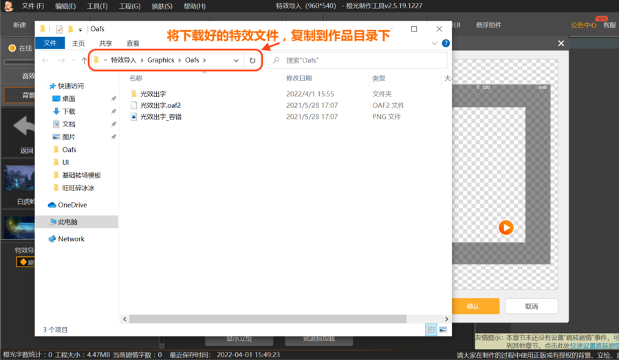 ①将下载解压好的特效文件,复制粘贴到作品工程文件内。