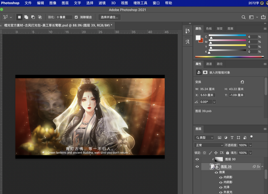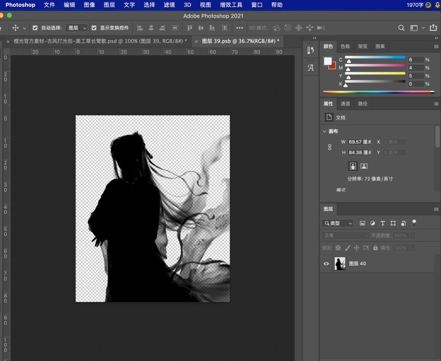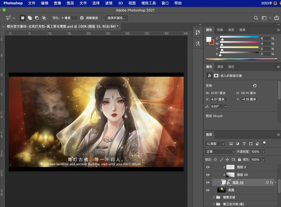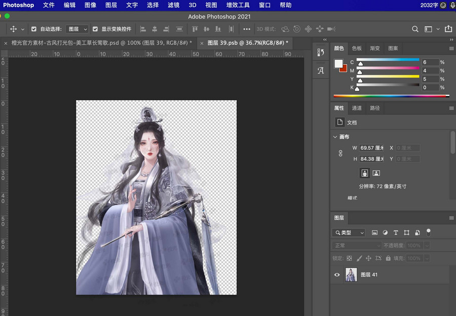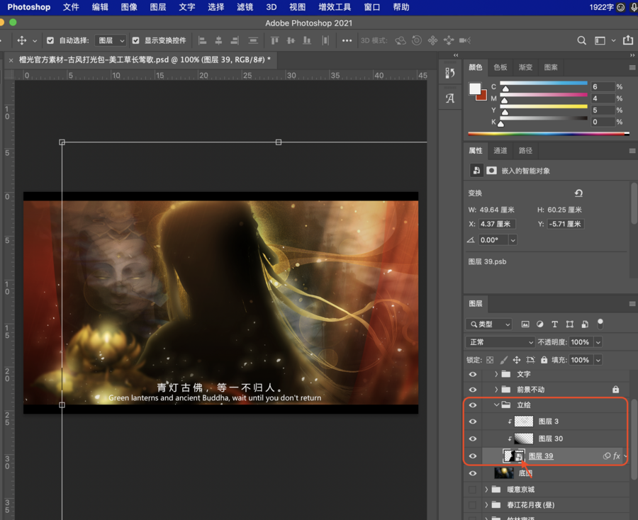① 打开封面/打光/表白卡素材的psd文件,找到立绘图层。