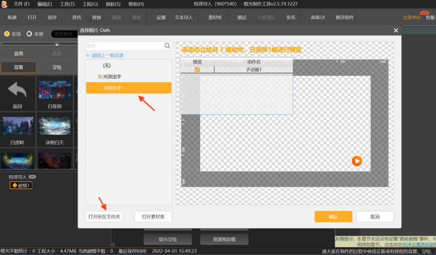 小贴士:点击“打开所在文件夹”,可以看到作品工程中的全部特效,自由选择你所爱~