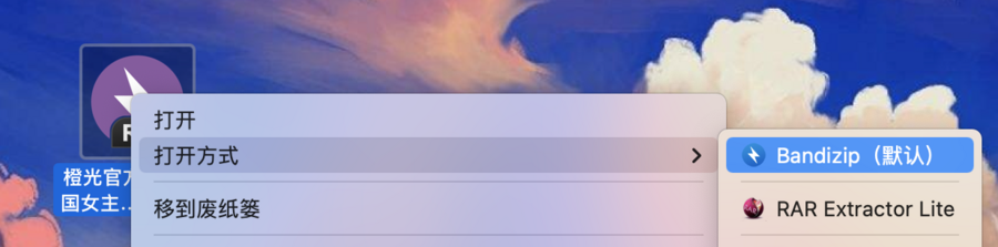①右键单击文件--打开方式,选择要使用的解压软件(此处以Bandzip为例,其他软件同理)