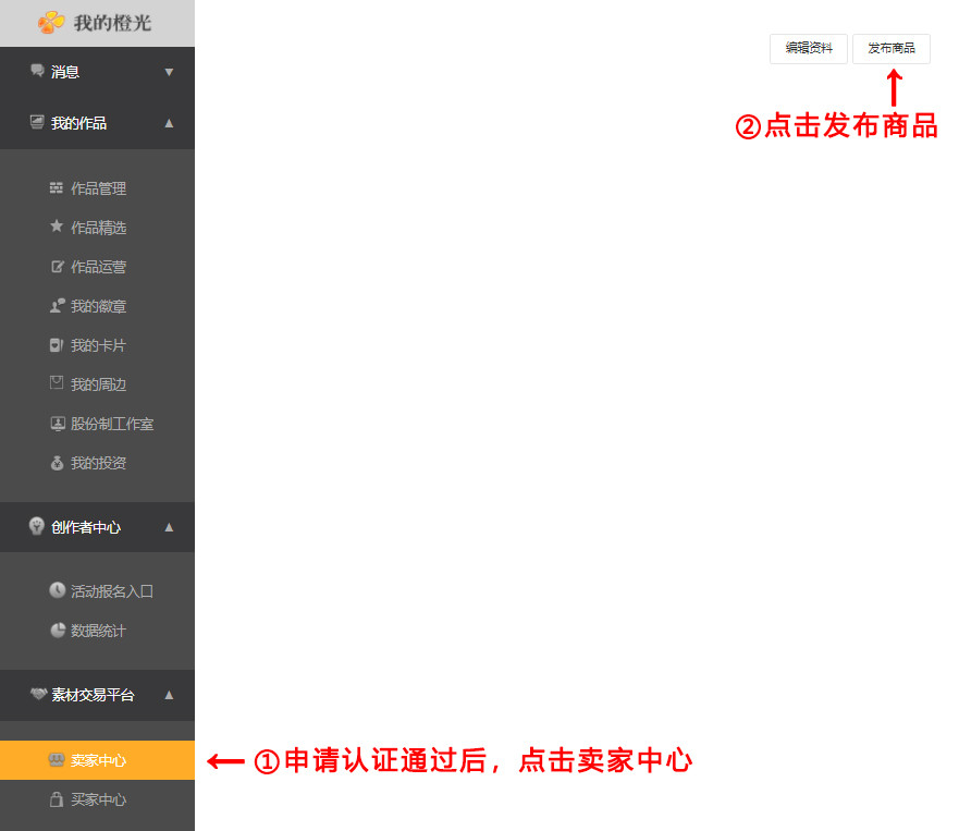 第一步,前往PC端橙光官网-个人中心-卖家中心-发布商品
