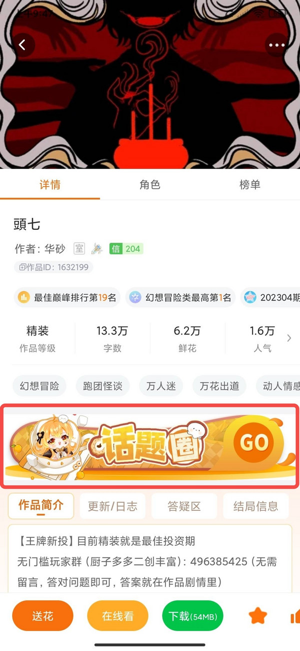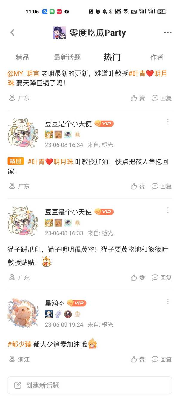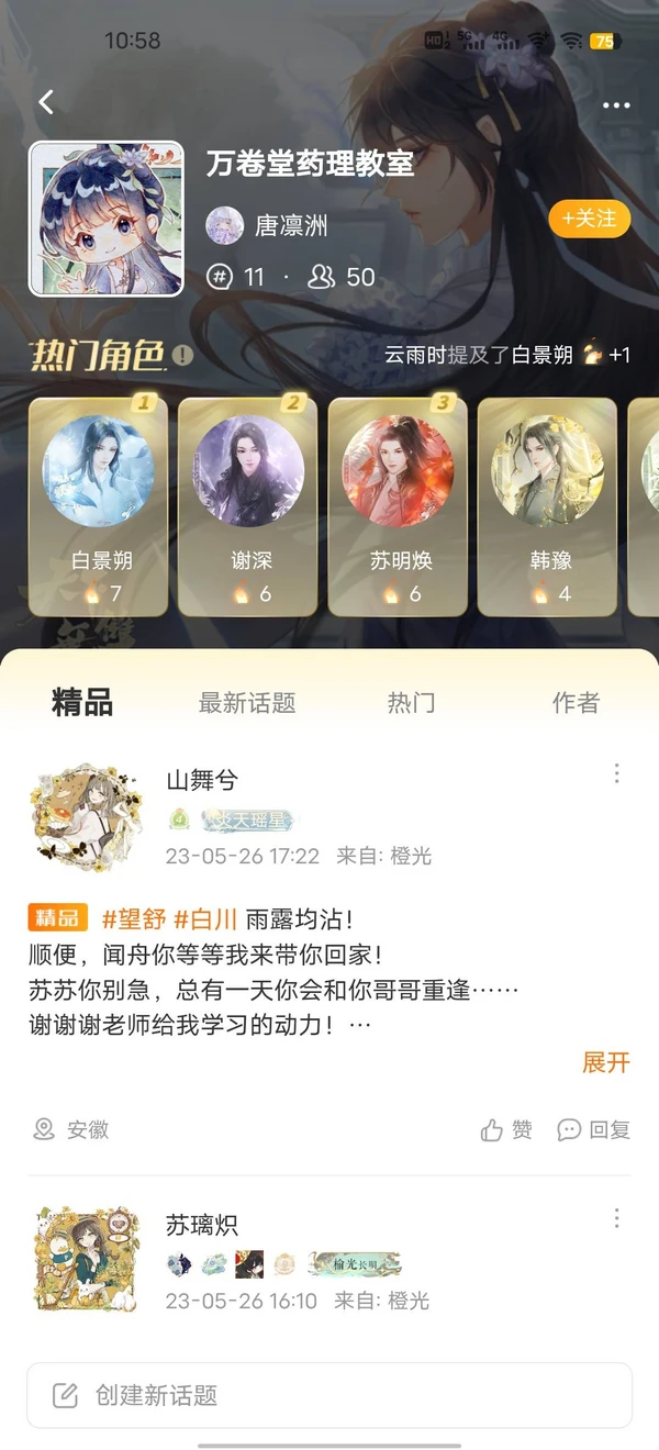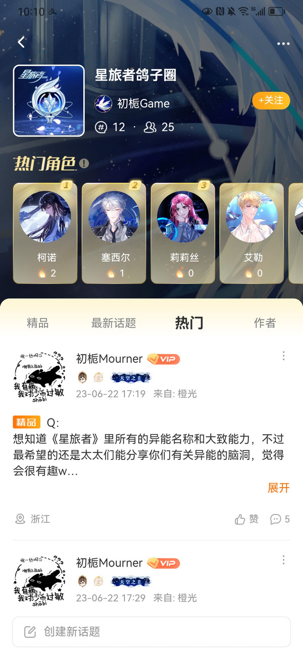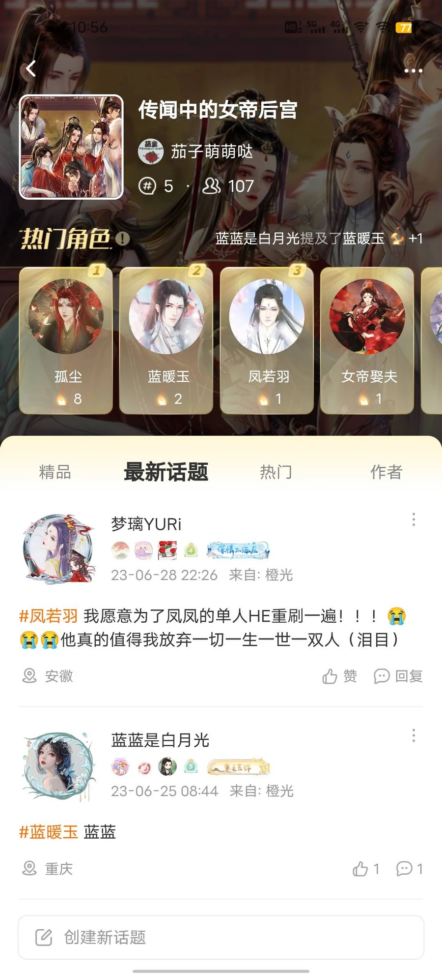 当作者大大通过申请后,小橙子就成功加入了该部作品的话题圈,可以在里面进行发言,诸如发帖表白角色、与其他成员友好交流、催更打call两不误~