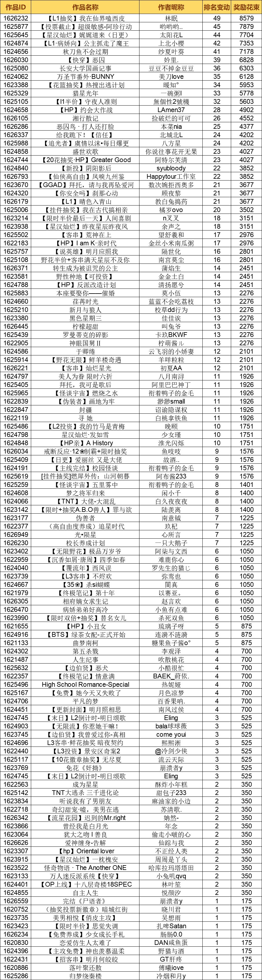THE BEST秋季赛第三阶段除了前面的获奖作者,其他参赛的小伙伴也很优秀,跃级奖获奖名单请查收~