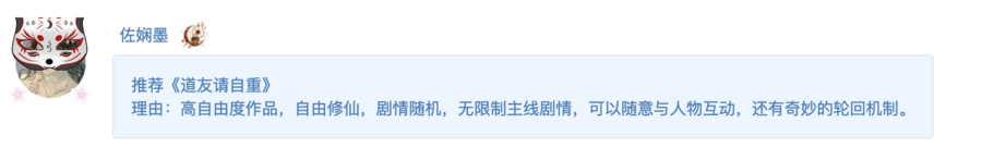 | 佐娴墨 | 《道友请自重》 |