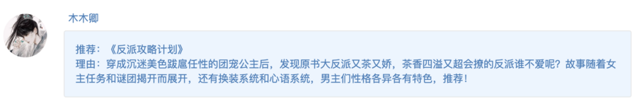 | 木木卿 | 《反派攻略计划》 |