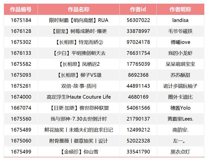 7月阶段获胜战队为【老婆战队】,恭喜以下作品可参与5000鲜花瓜分奖励~
