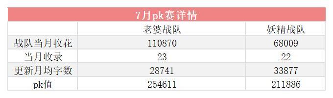 战队PK值计算方法:战队月PK值=战队当月收花数+战队当月收录数*5000+战队更新月均字数
