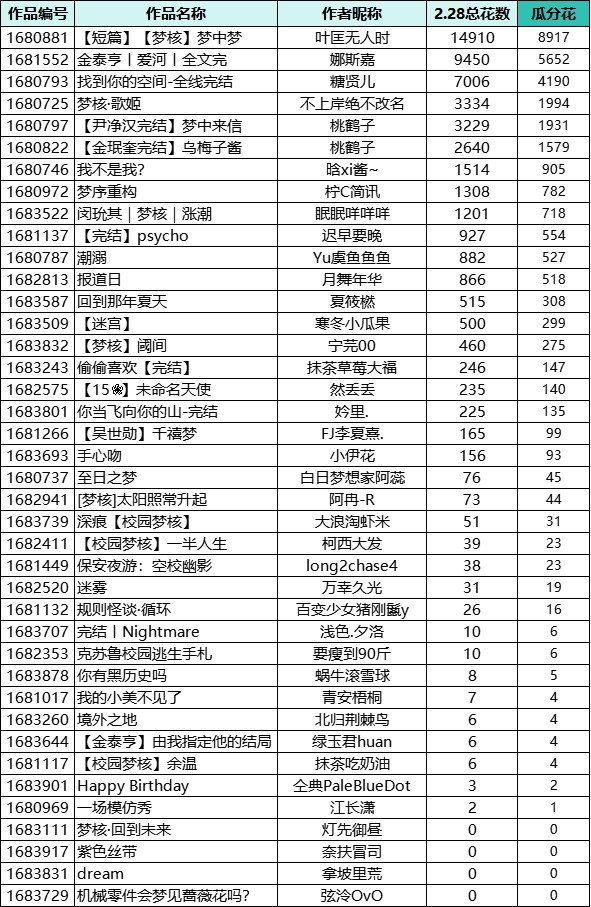 校园题材奖励花瓜分情况