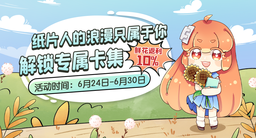 表白心悦卡集,遇见专属浪漫,请允许我成为你的夏天吧~这场属于你和纸片人的约会简直妙不可言!解锁卡集还有10%的鲜花返利哦~