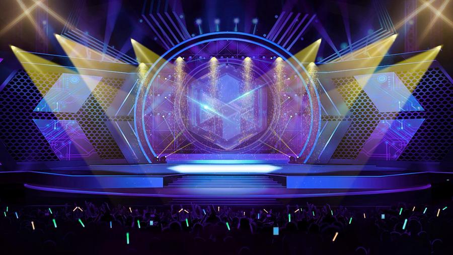 舞台上五颜六色的的灯光,随着音乐忽明忽暗
