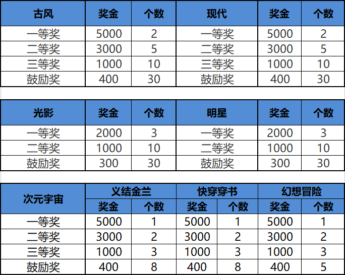 注:为鼓励新人作者,未签约作者和2021年签约的新作者,如作品获得一/二/三等奖,可在原奖金基础上额外获得200元现金奖励;
