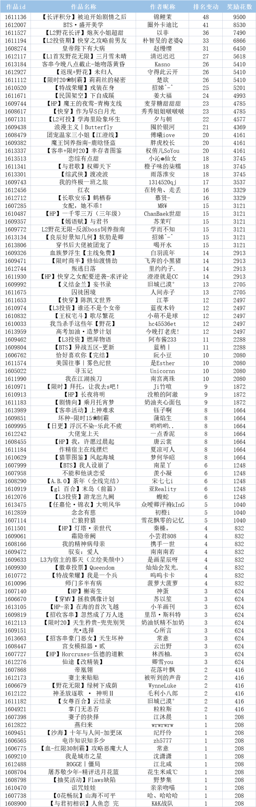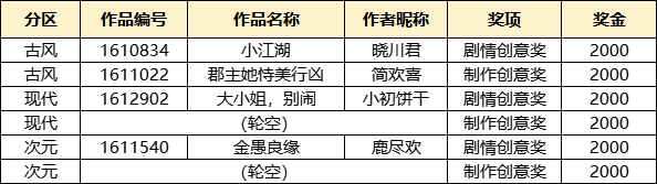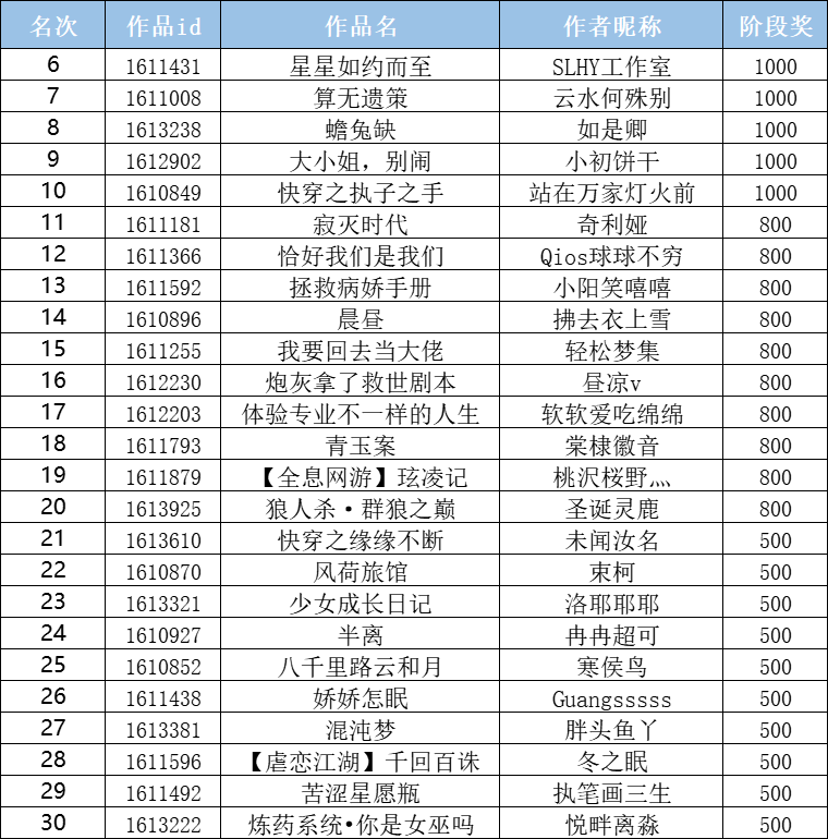 除了前面的获奖作者,其他参赛的小伙伴也很优秀,跃级奖获奖名单请查收~