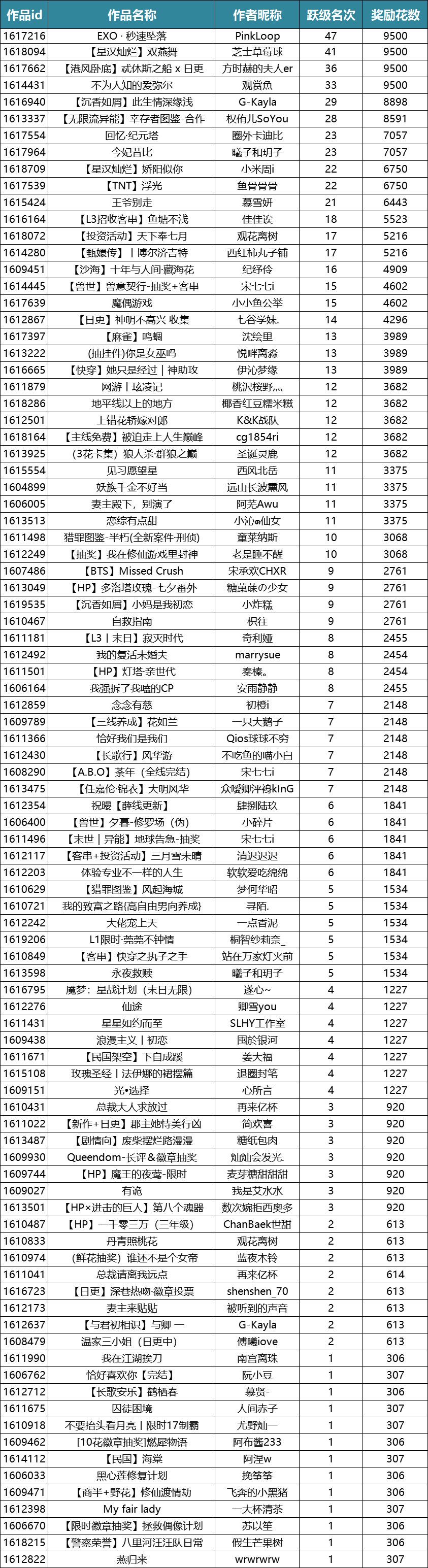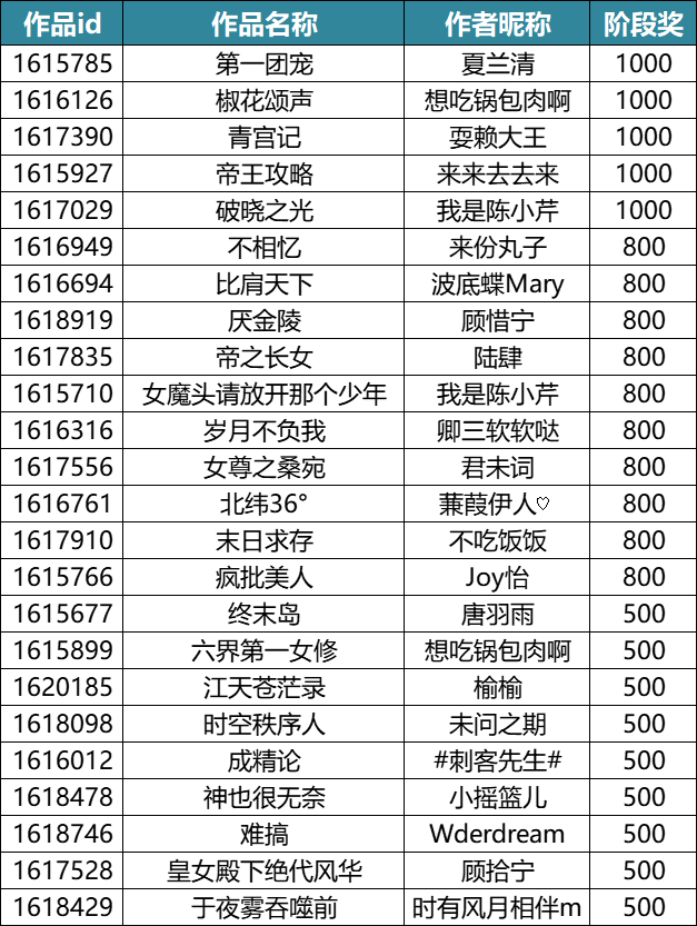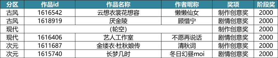 除了前面的获奖作者,其他参赛的小伙伴也很优秀,跃级奖获奖名单请查收~