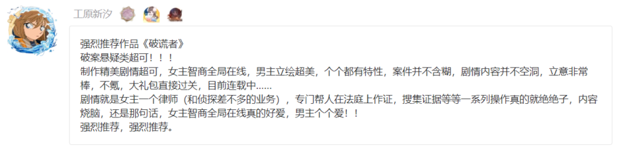 | 工原新汐 | 《破谎者》 |