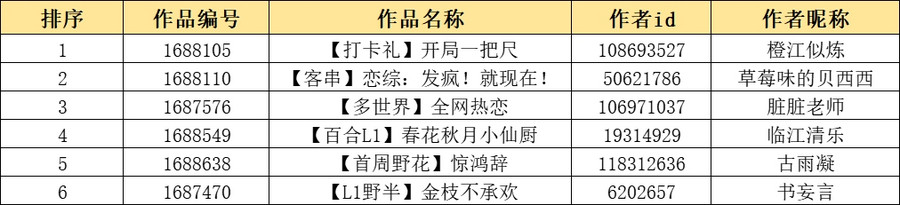 *获得排名奖的作品在阶段结算时总收花需大于5000花,否则奖励将不予发放。