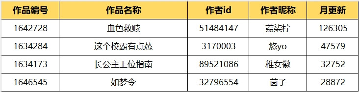 每赛段月更新25000字以上的前十个作品可额外获得200元勤更奖,让我们看看是哪些勤劳的小伙伴用自己的努力赢得了奖金!(奖金将以鲜花奖励的形式发放给作品)