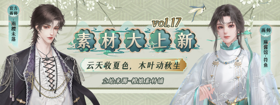素材库所有上新内容,可在橙光制作工具-素材库里搜索“《》”中的名字,进行下载,即可找到你pick的那个TA~快快抱走,摇身一变成为作者大大吧!