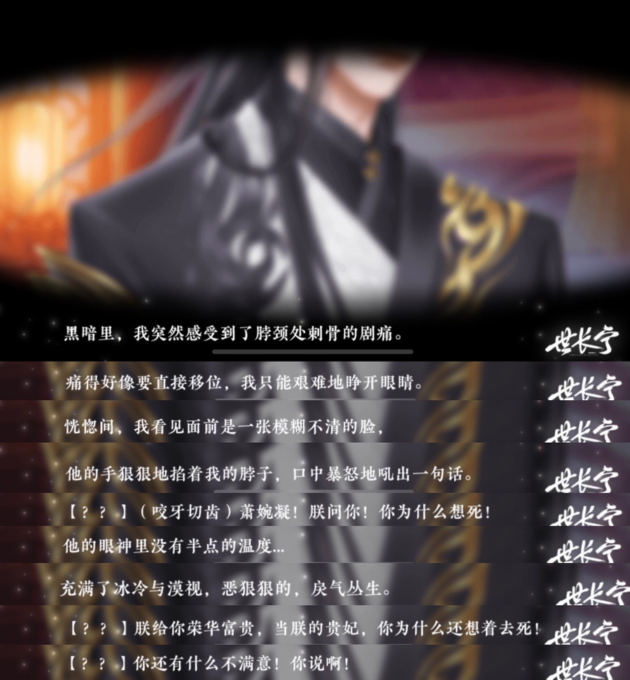从以上片段可看出,萧婉凝穿越到了逼近原主死亡的现场,在这个过程中,渲染了紧张的气氛让玩家对后面的剧情有期待感,在此也交代了原书中的部分剧情设定,在这种极致的冲突下完成了剧情的铺垫。