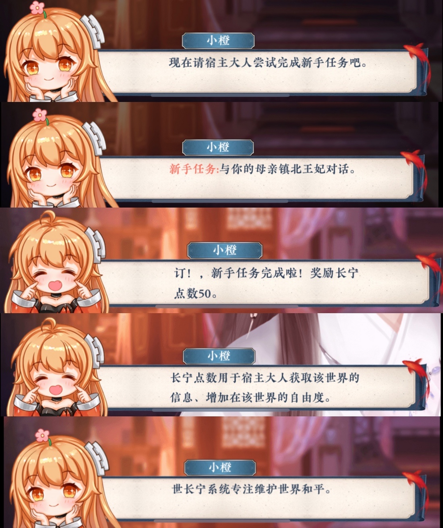 从以上片段可看出,在萧婉凝完成第一个任务时,系统给予了奖励长宁点数,这就是上文提到过的系统奖励机制。后续系统再次为主角发布的任务是维护书中世界的和平。
