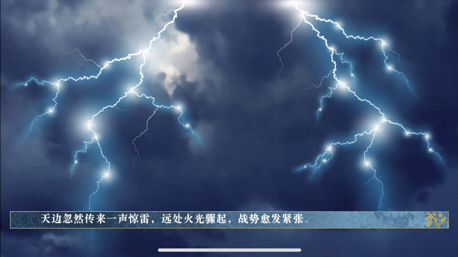 这里用BGM和下雨/打雷等画面为例,音乐可以选择自带紧张氛围,下雨/打雷的场景也可以渲染紧张氛围,在制作时选用合适的BGM与画面也可以大大增加玩家的代入感。