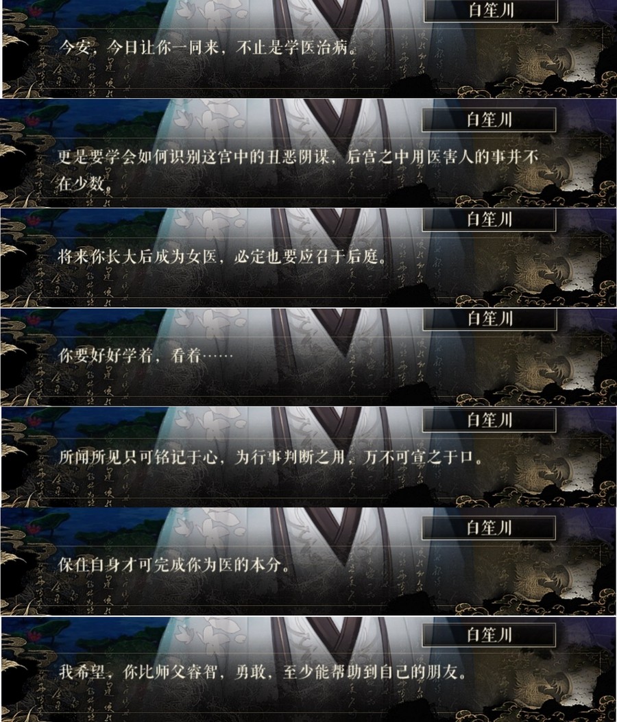 故事中的师父心怀良善之心,谨遵医德,收容还是孤儿的女主,视如己出,谆谆教诲,他对满心复仇的女主产生了极大的影响,不仅在医术上教导了女主,更是在品行上做好了标杆,改变了女主自幼偏执和狠厉的复仇决心,明白善恶对错,医心医德,即便复仇也尽量避免伤及无辜,女主的成长可以说是离不开这位良师的影响。