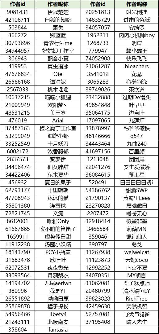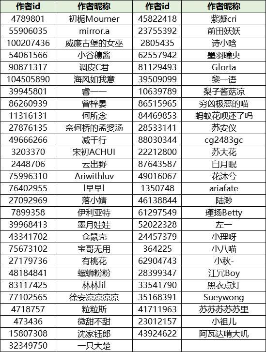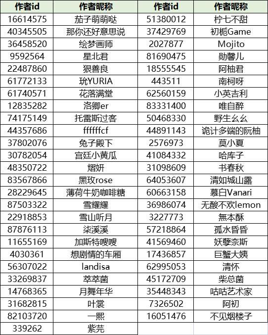 除以上作者外,还有部分正在参加 THE BEST 活动且符合王牌作者评审要求的作者,将会在THE BEST 活动结束后补发初级王牌作者徽章,期待他们在THE BEST活动中的优秀表现。
