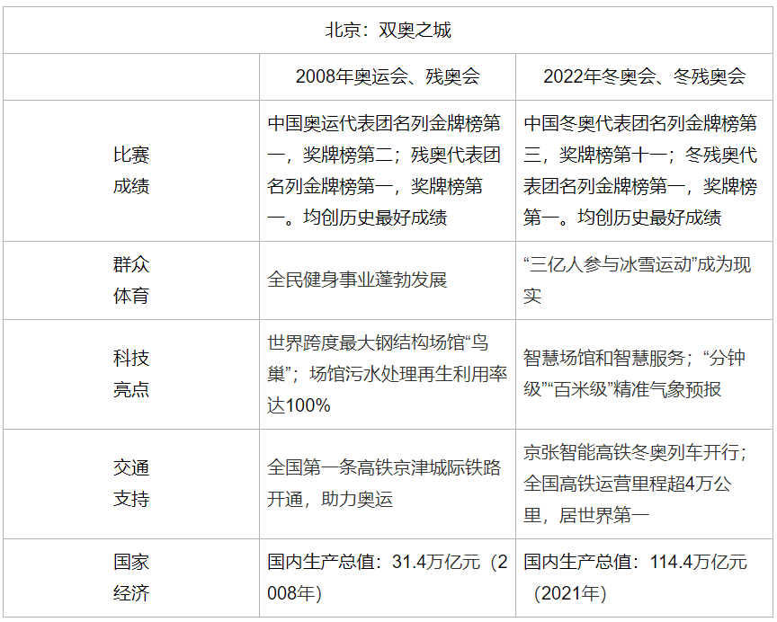 双奥之城,闪耀世界。两次奥运会,都显示了中国体育发展的新高度,展示了中国综合国力的跨越式发展,也见证了你从懵懂儿童向有为青年的跨越。亲历其中,你能感受到体育的荣耀和国家的强盛;未来前行,你将融入民族复兴的澎湃春潮。卓越永无止境,跨越永不停歇。