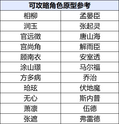 作品的可攻略角色原型参考,选择一个本次征稿角色列表中的人物。