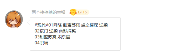 03 娱乐圈、甜蜜苏爽、逆袭,豪门,作品名称:《娱乐大明星》;