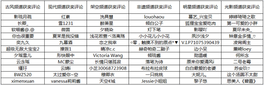 古风频道现代频道架空频道非遗频道明星频道光影频道①七夕大作战获奖结果