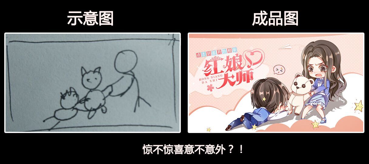 “写的嗨”、“吃的爽”大概是最贴切的形容。“写的嗨”就是基本不卡文,角色附体,把自己最想表达的、最想写的统统都写出来了。“吃的爽”嘛,嘿嘿嘿,因为有时候讨论剧情的时候我就和小夏(就是楼上那位)一起出去吃吃吃!口味相同又聊得来的伙伴是多么让人身心舒畅啊!对了,尤其想提一个有趣的事,我真是佩服死了我们的美术大大们!啥也不说了,上图就明白了!左边是我的示意图,右边是成品……想笑就笑吧,别控制。