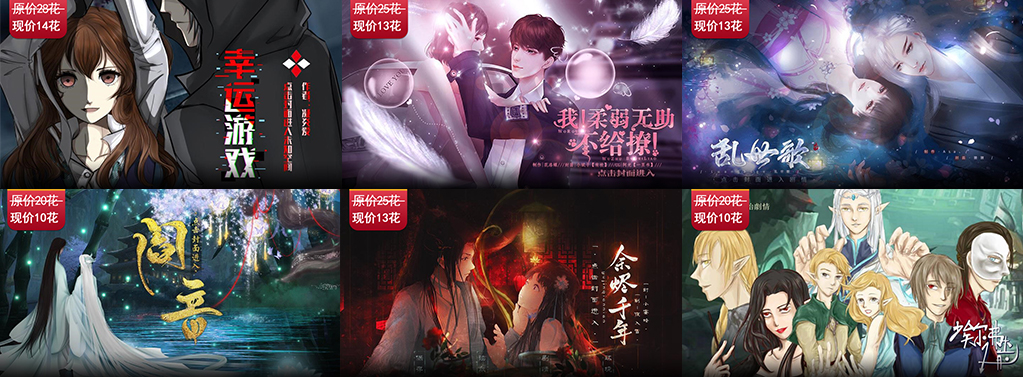 古风、现代、架空、非遗四大频道推出的情人节半价专辑,专辑内的作品分包含“甜”和“虐”两种“馅儿”的,爱吃哪一种,就吃哪一种。