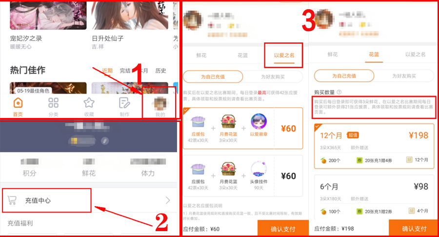 在APP个人中心-充值中心购买以爱之名应援包,每日登录后可获得3朵鲜花和42张应援票。每日应援票上限为42票,单个角色投票应援上限为14票。(应援包仅限APP端购买)