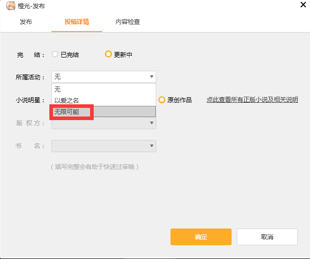 选择活动标签“无限可能”并发布。