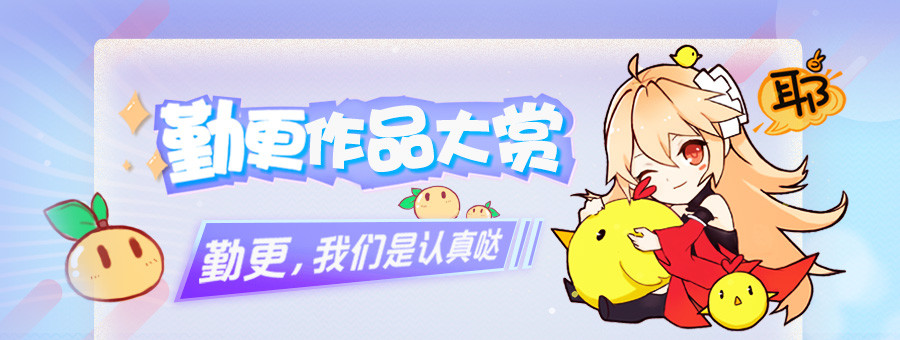 单款作品在一个自然月内,累计更新总字数前三名可各价值1k元的素材奖励(定制ui/小物件)每个月评比一次。