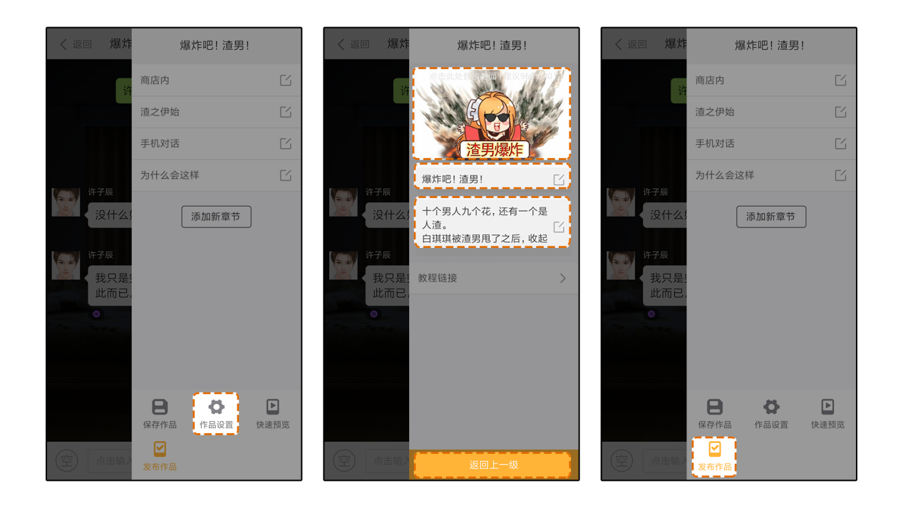 第三步:设置完毕后点击【返回上一页】,点击发布作品即可。