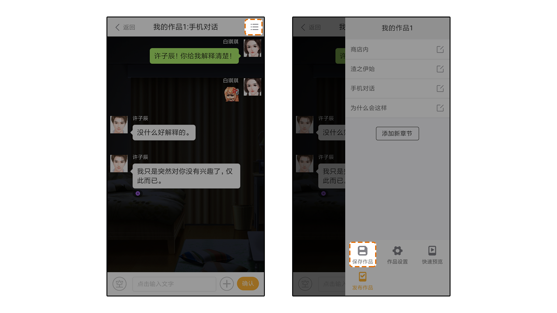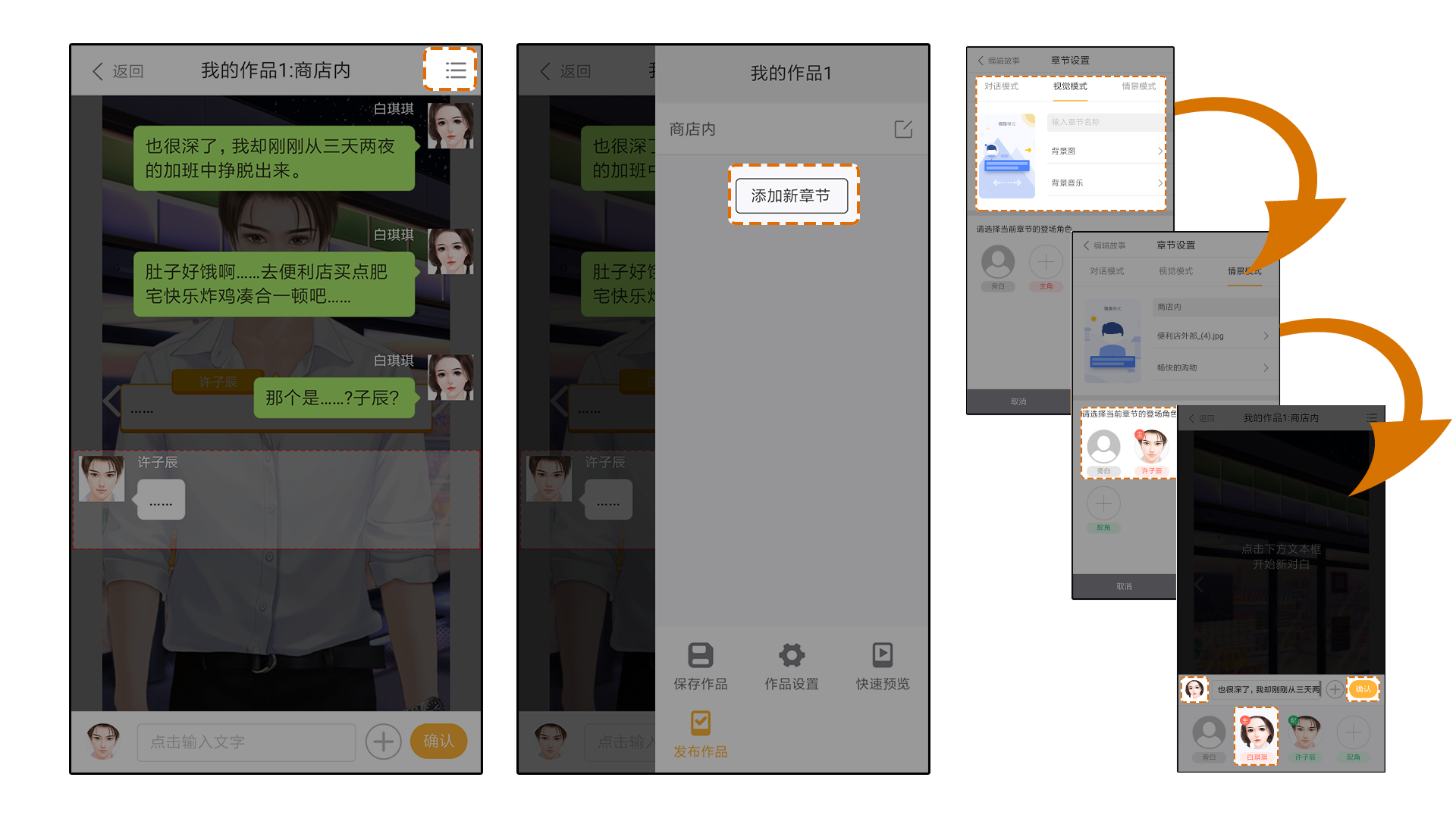 注意:同一部作品中,每个章节使用一种模式,三种模式是可以根据剧情章节随意使用切换的。