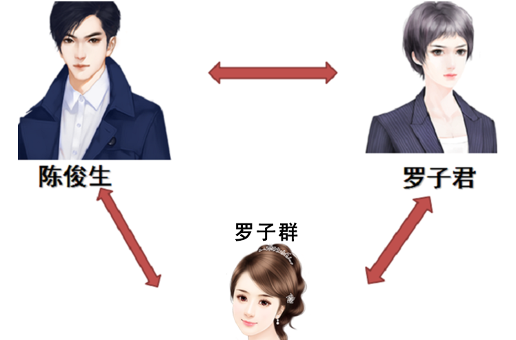 从以上案例中总结,我们可以看到,每个人物出场的时候都能放进不同的三角关系当中,比如陈俊生,他可以与罗子君、贺涵产生一个三角关系,也可以与罗子群、罗子君产生一个三角关系,他还可以与罗子君、唐晶产生另一个三角关系(唐晶作为早先的知情人,对于陈俊生外遇这件事对陈俊生有挟持作用)。