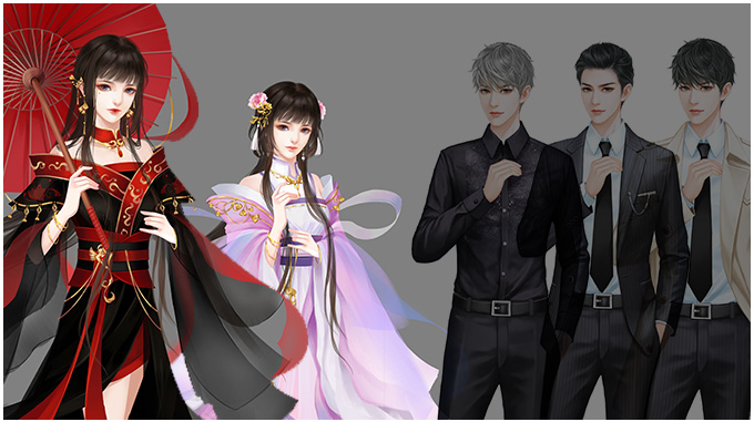 古风仙侠女立绘、现代总裁男立绘;画师:庄生
